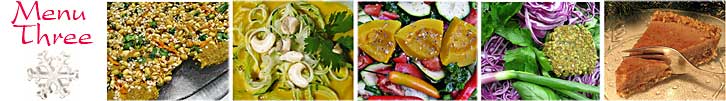 Holiday meals can be wonderfully healthy, brimming with vital nutrients to keep us feeling our best. The following menus have been created to make sumptuous raw food feasts! Use as they're presented, mix and match recipes, or combine them with your own specialties for a totally new and exciting menu.