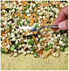 This hearty dehydrated bread is made with sprouted pumpkin seeds, carrots, and sweet onions with a topping of mung bean sprouts, green onions, sesame seeds, and grated carrots, pressed in after the bread is formed. The topping adds extra protein, a delicious taste and texture, and has a beauty that we greatly enjoy.