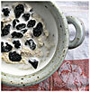 We're crazy about this new breakfast: berry puree over bananas, with a touch of creamy almond milk, and some of our buckwheat granola. The berries are a welcome gift in the middle of winter, filled with mouth watering, sun-colored flavor.