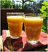 This diluted juice, made with carrots, ginger, yam, and tahini, makes a delicious drink that's more filling than regular juice. The yam and tahini bring exotic flavors to the mix. We often enjoy it in the afternoon because it staves off hunger until it's time for dinner.