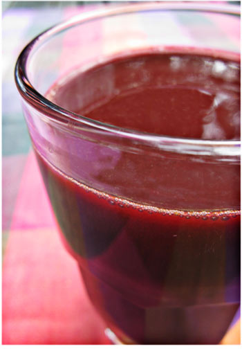 The old standby, V8 juice, can be easily recreated using fresh and lively ingredients. Tomatoes, carrots, celery, chard, green onion, parsley, cucumber, and beet, combine to make a vitalizing, cleansing, and building juice.
